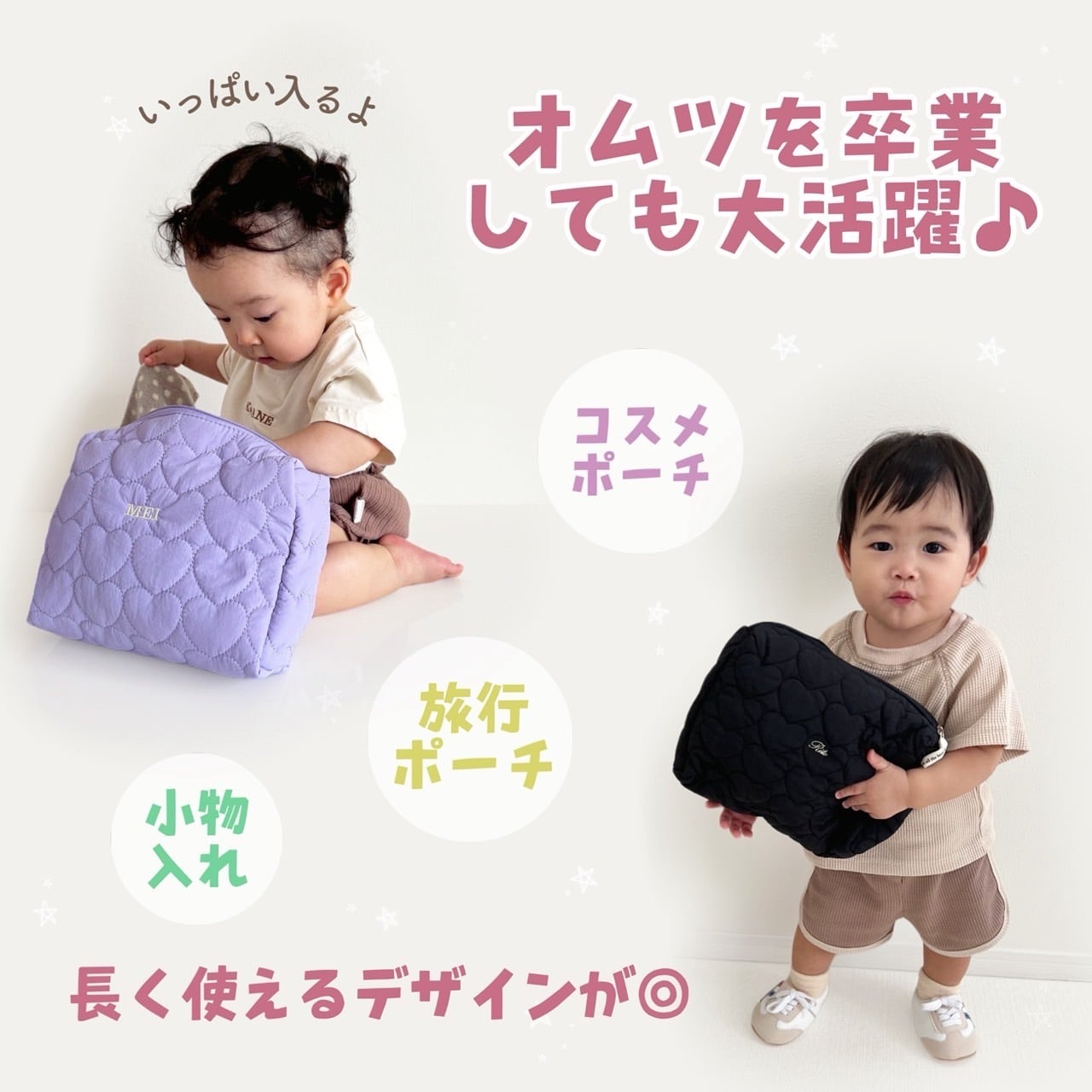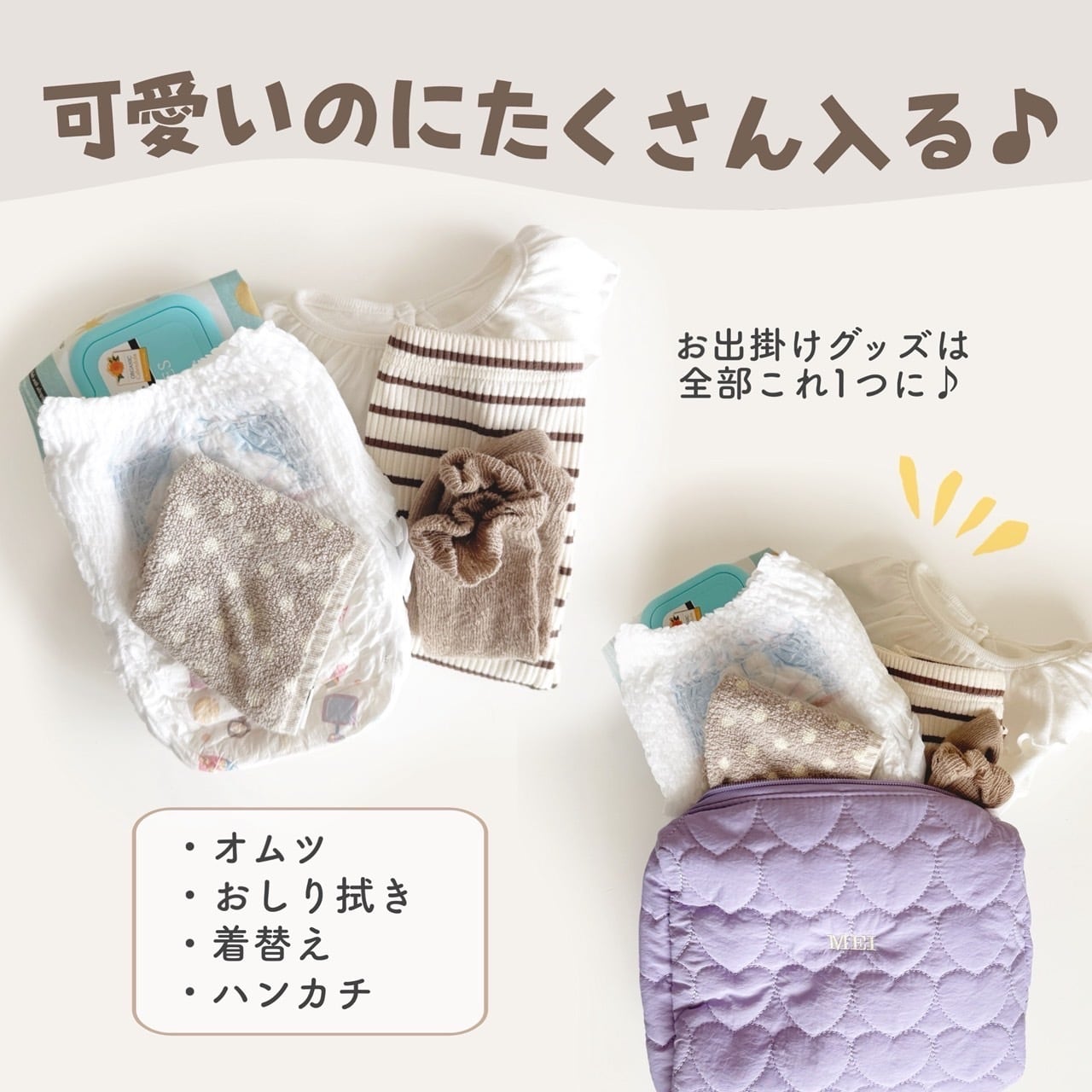 お出かけやおむつ替えも安心。