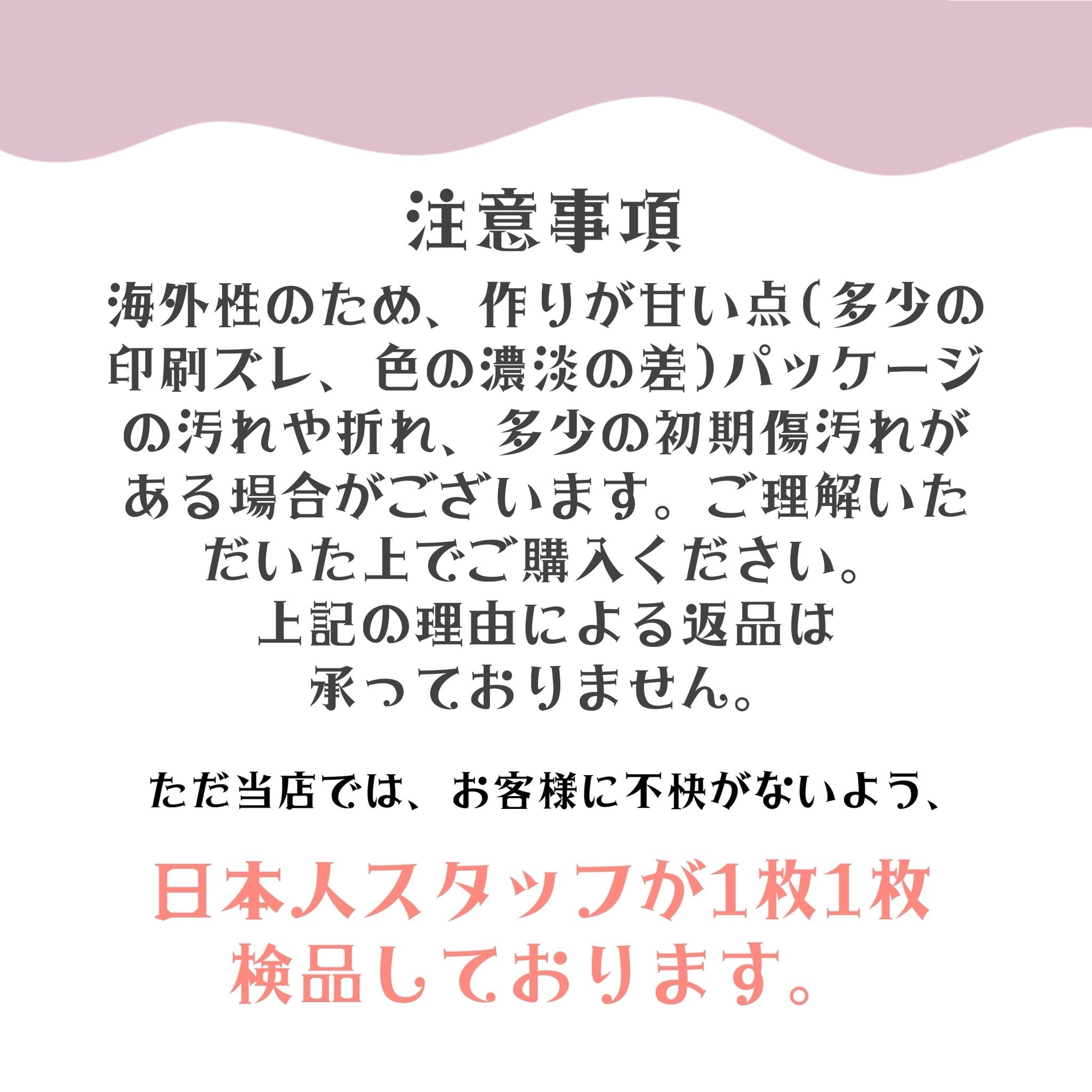 日本人スタッフが一枚一枚検品しております。