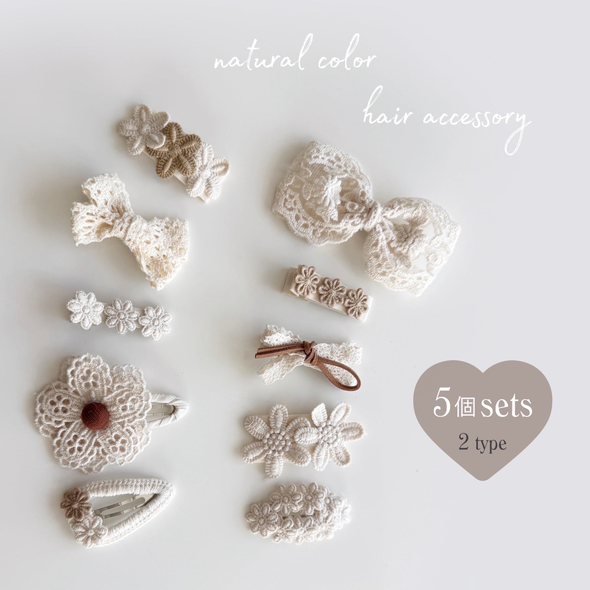 ナチュラルカラーのレースが可愛い5個セットのヘアピン